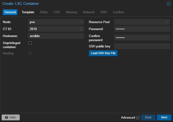 Dodanie kontenera LXC z Ansible do zarządzania w konfiguracji Ansible