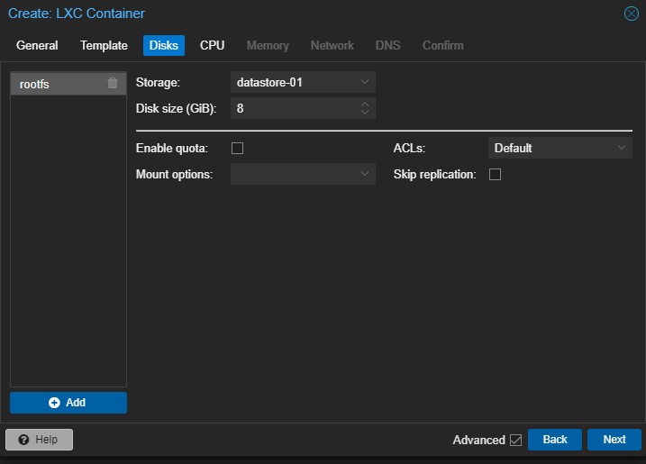 - unprivileged aby można było swobodnie korzystać z klientów sieciowych NFS, SMB/CIFS, FUSE