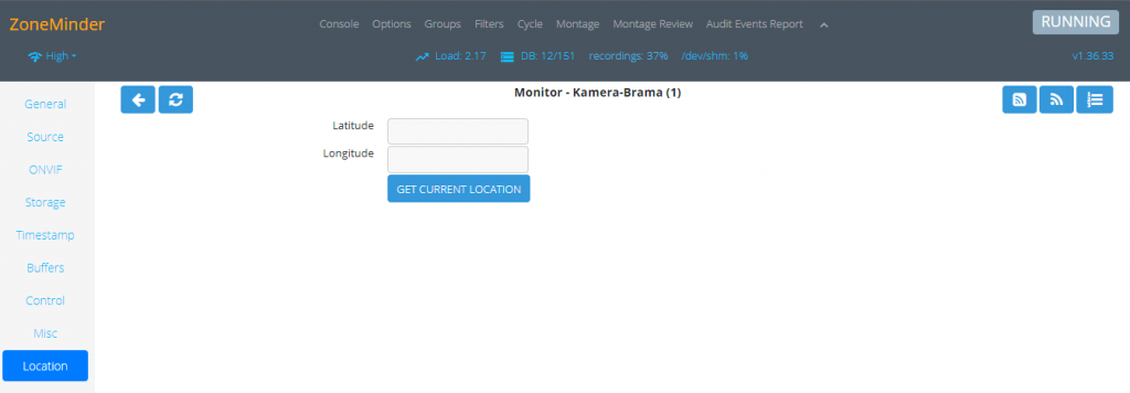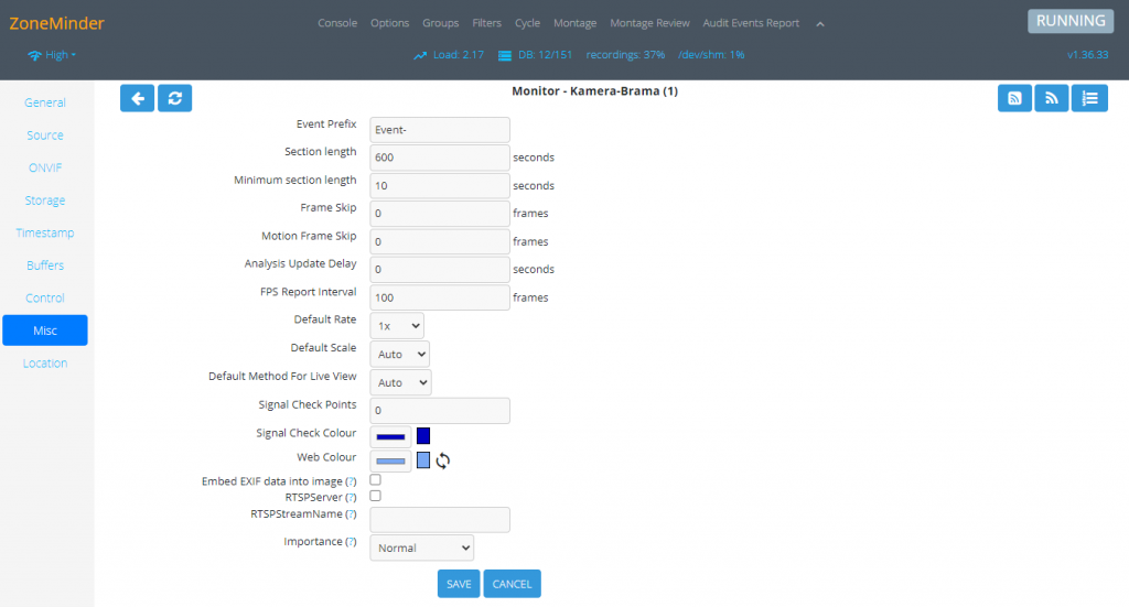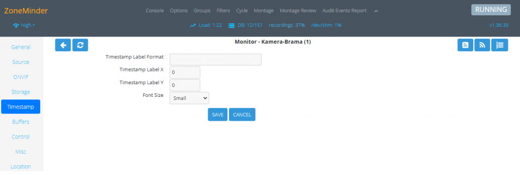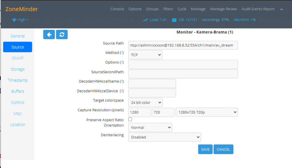 Logujemy się do interfejsu www ZoneMinder http://adres_ip/zm/, login: admin, hasło: admin