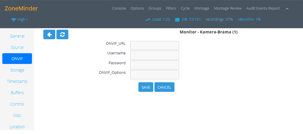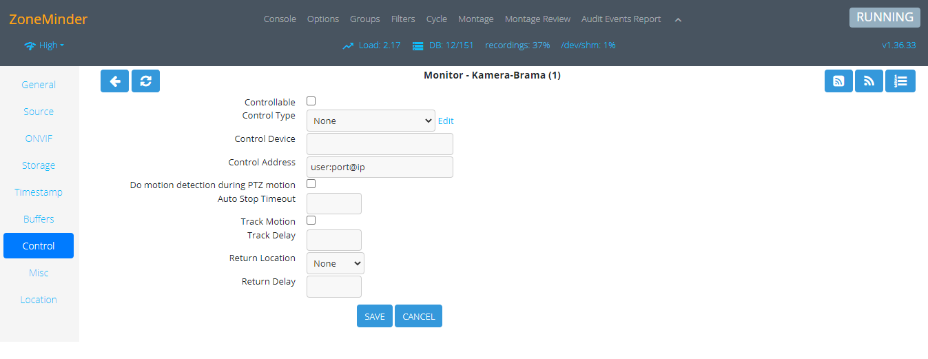 Logujemy się do interfejsu www ZoneMinder http://adres_ip/zm/, login: admin, hasło: admin