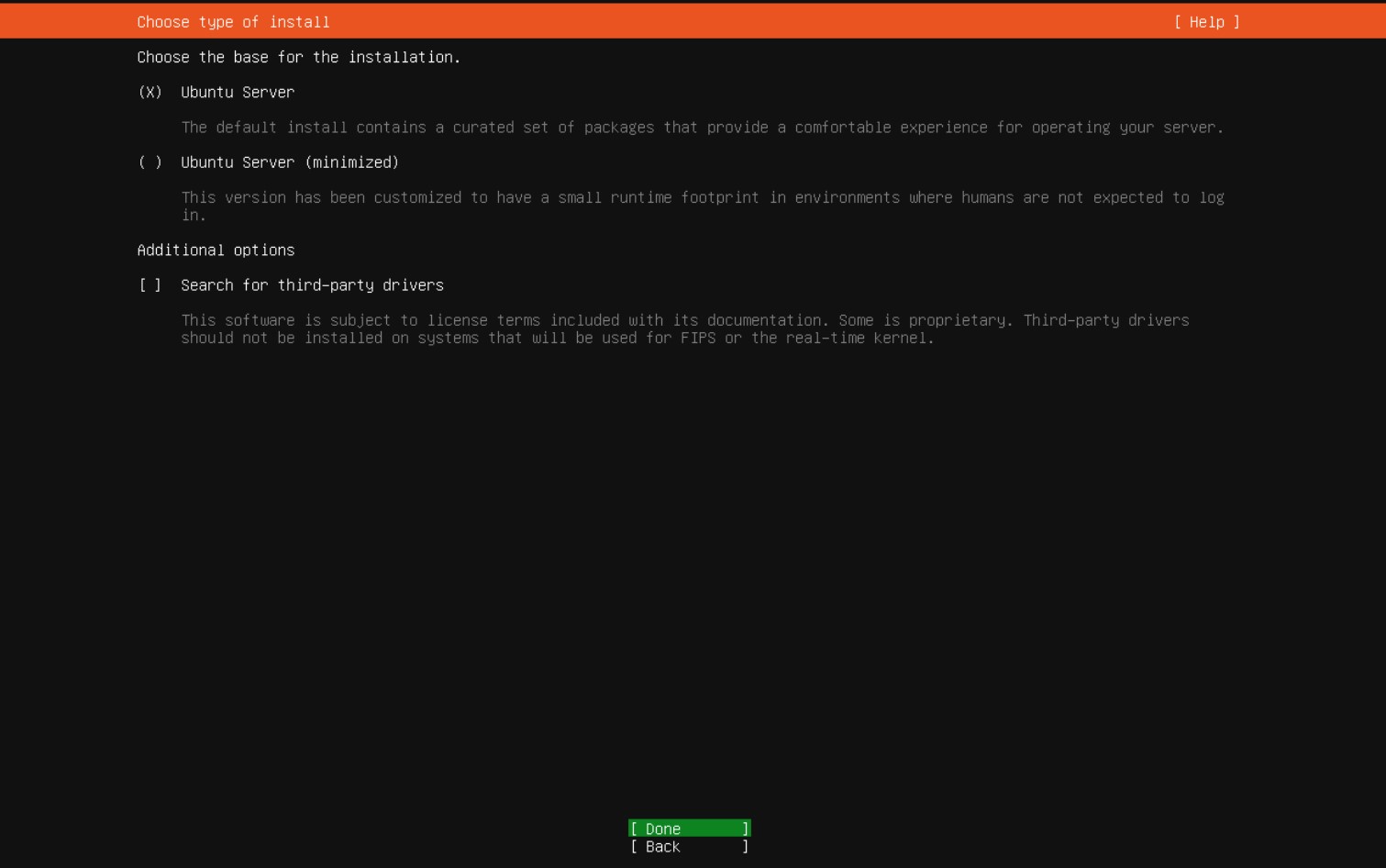 - Wybieramy typ instalacji na Ubuntu Server