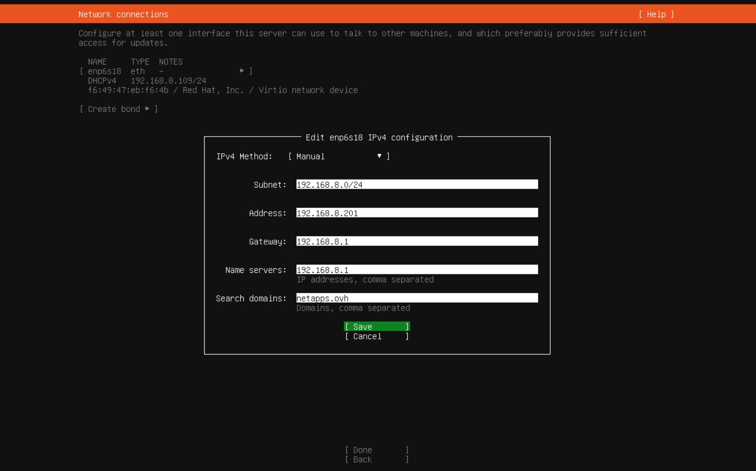- Ustawiamy statyczny adres ip naszego serwera