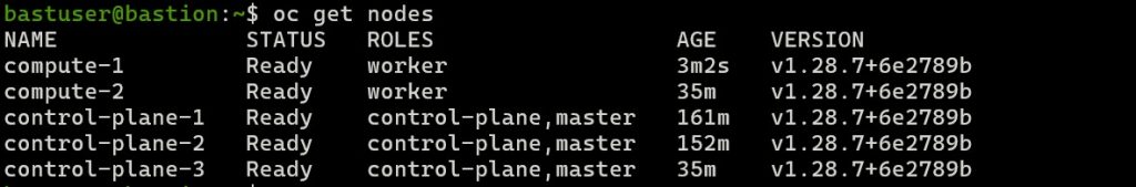 # na maszynie bastion oc get nodes lub oc get nodes -o wide