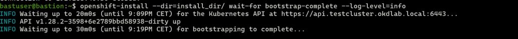 # z maszyny bastion curl -k https://api.testcluster.okdlab.local:6443/healthz ok