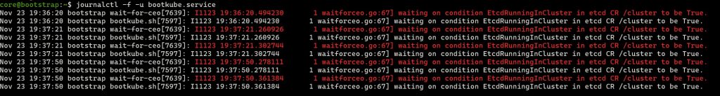 # na maszynie bastion ssh -i /home/bastuser/.ssh/id_ed25519 [email protected] # na maszynie bootstrap journalctl -f -u bootkube.service