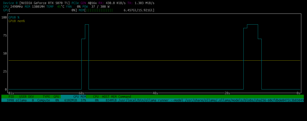 # sprawdzamy czy maszyna wirtualna widzi kartę graficzną lspci | grep VGA 01:00.0 VGA compatible controller: NVIDIA Corporation Device 2c05 (rev a1) # aktualizacja i instalacja sterowników sudo apt update && sudo apt upgrade -y sudo apt install ubuntu-drivers-common -y sudo ubuntu-drivers autoinstall sudo reboot # instalacja narzędzia nvtop sudo apt install nvtop -y