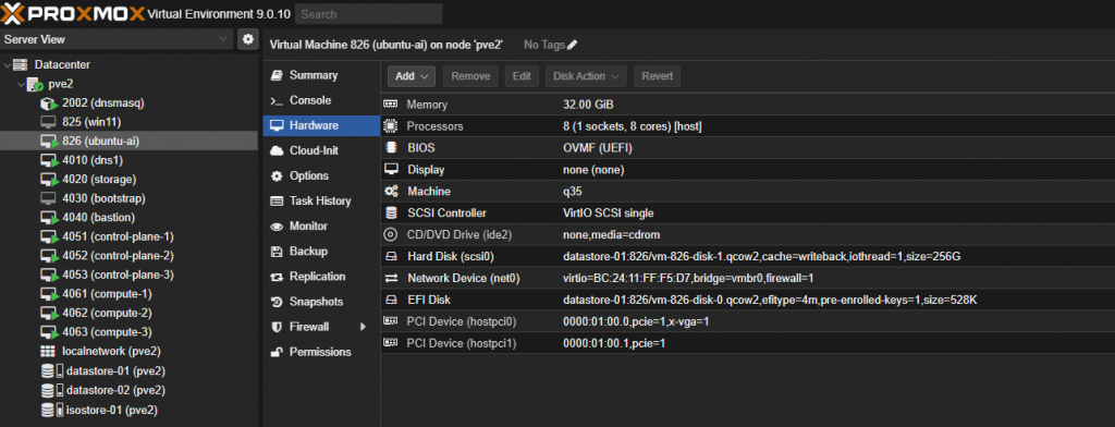 Jeśli mamy już skonfigurowane passthrough GPU na hoście Proxmox 9 to możemy przystąpić do konfiguracji i instalacji maszyny wirtualnej bazującej na Ubuntu Server 24.04.3 LTS https://ubuntu.com/download/server