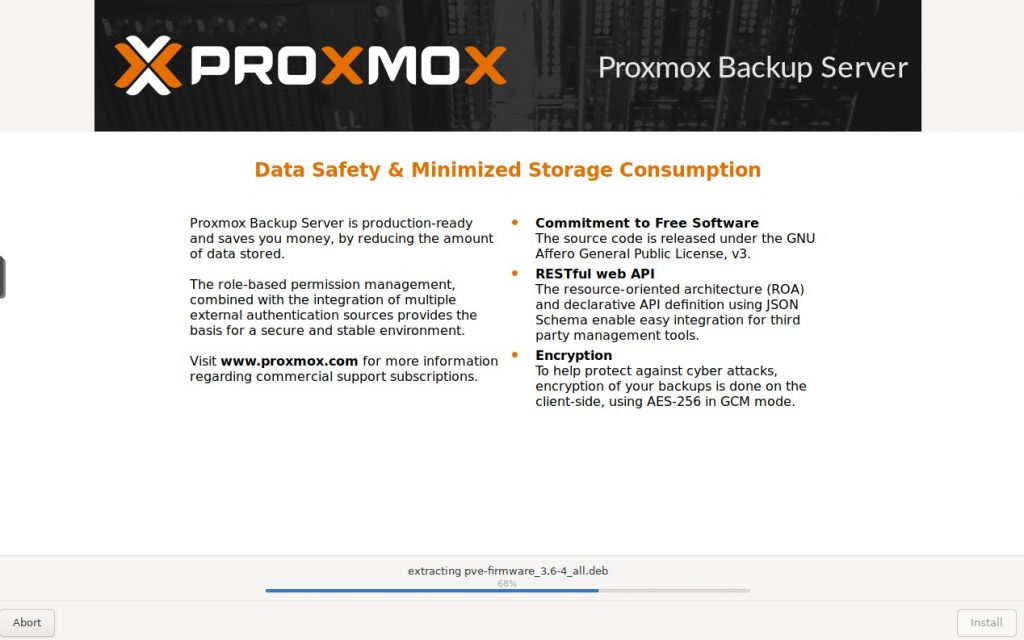 Proxmox Backup Server to rozwiązanie do tworzenia kopii zapasowych klasy korporacyjnej typu klient-serwer, które umożliwia tworzenie kopii zapasowych maszyn wirtualnych, kontenerów i hostów fizycznych. Jest specjalnie zoptymalizowany pod kątem platformy środowiska wirtualnego Proxmox i umożliwia bezpieczne tworzenie kopii zapasowych danych, nawet między zdalnymi lokalizacjami, zapewniając łatwe zarządzanie za pomocą internetowego interfejsu użytkownika. Obsługuje deduplikację, kompresję i uwierzytelnione szyfrowanie (AE).