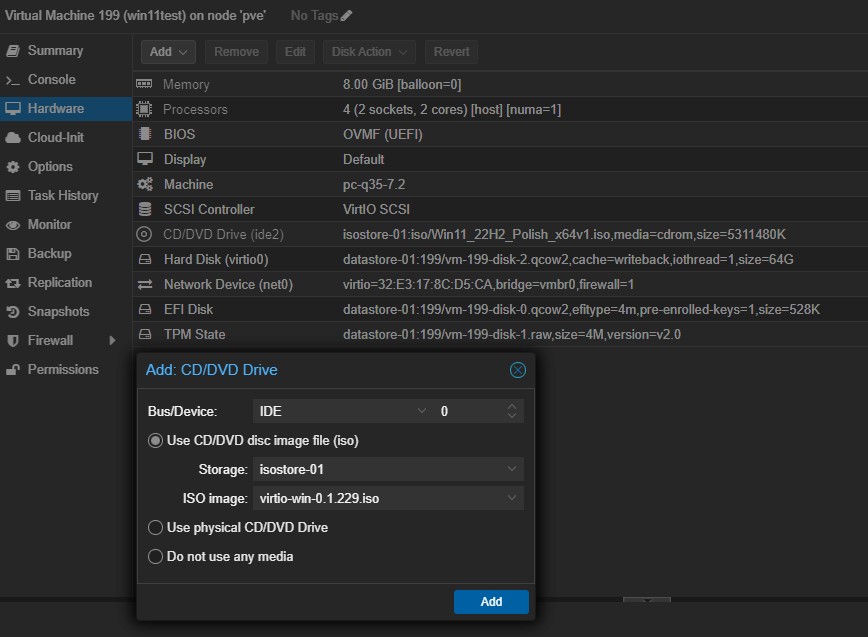 Proxmox VE – Instalacja Windows 11 z modułem TPM
