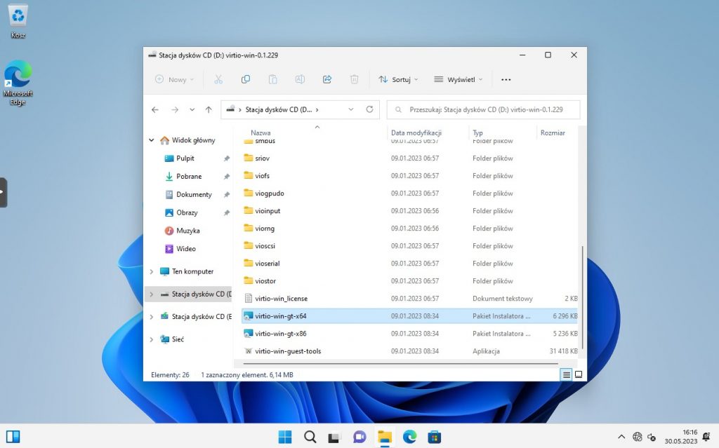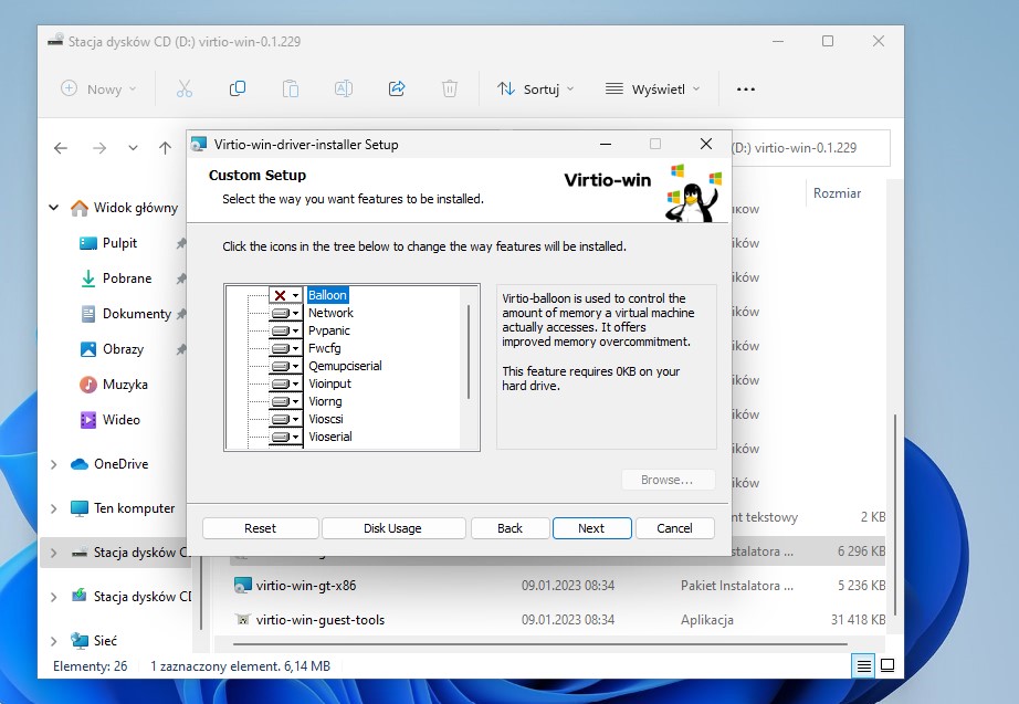 Instalacja  sterowników VirtIO oraz qemu agent w maszynie wirtualnej Windows 11