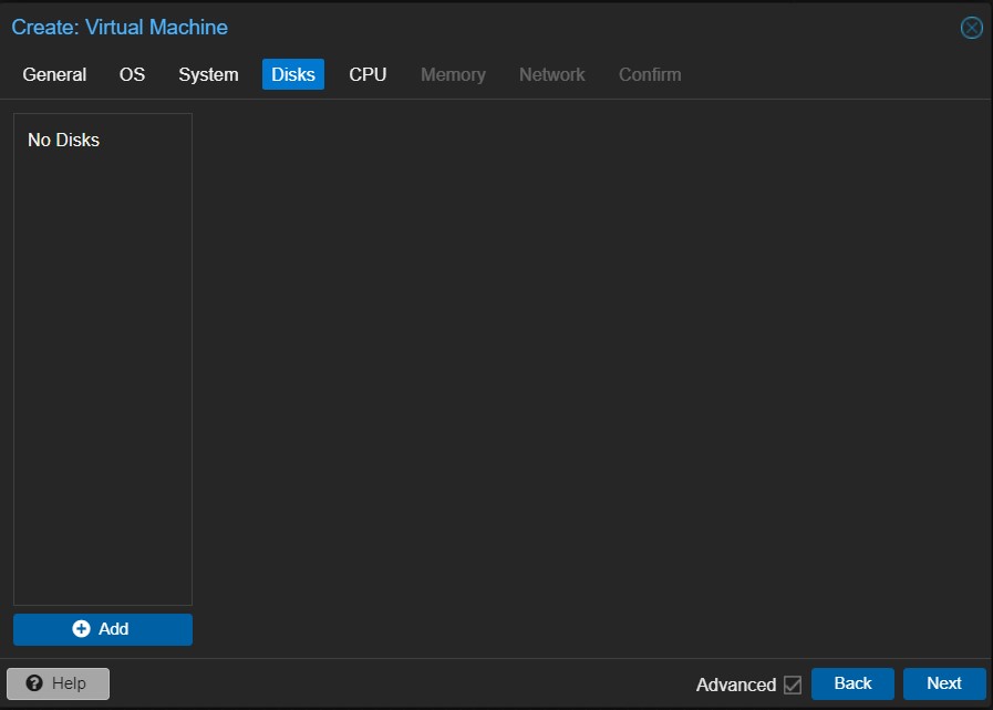 • usuwamy wszelkie dyski jakie proponuje domyślnie Proxmox