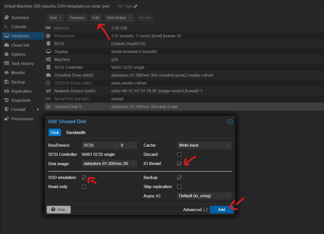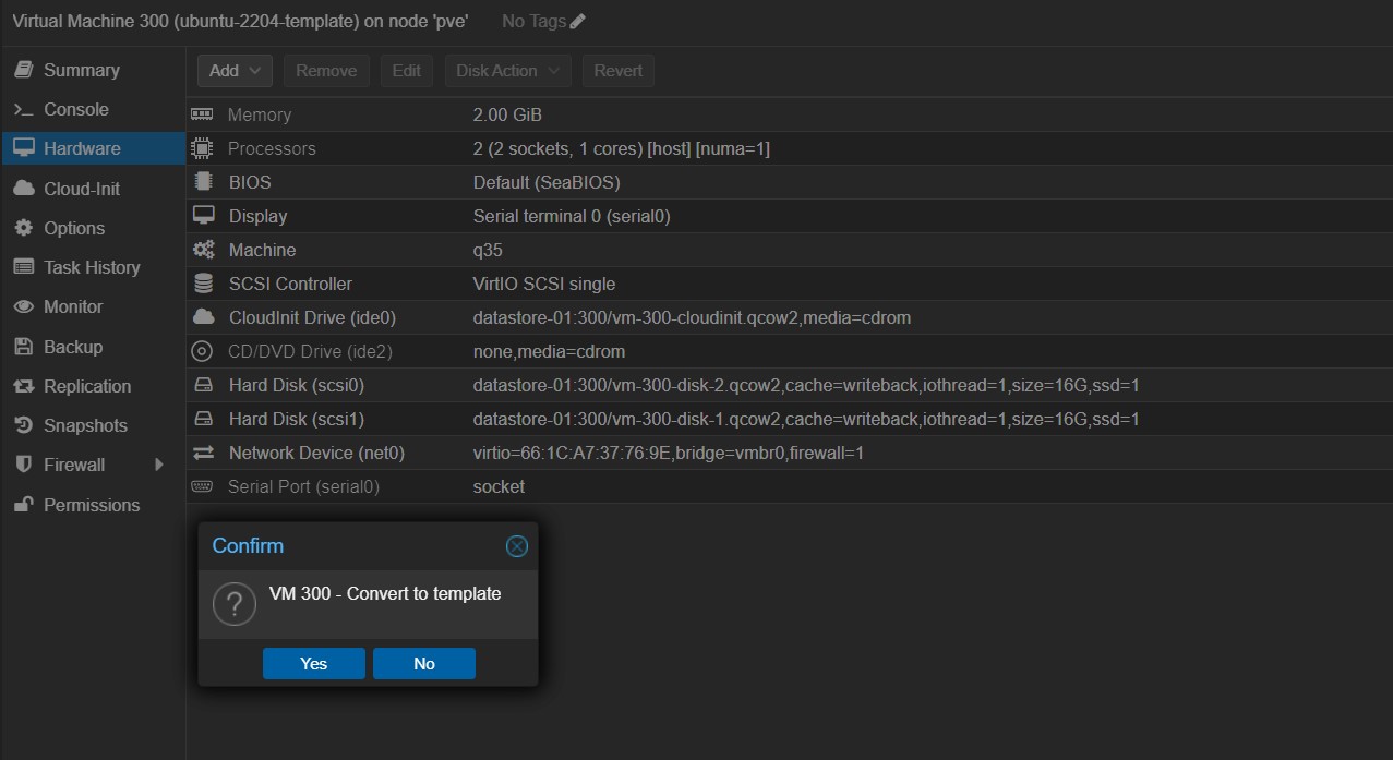 qm importdisk 300 ubuntu-22.04-server.qcow2 datastore-01