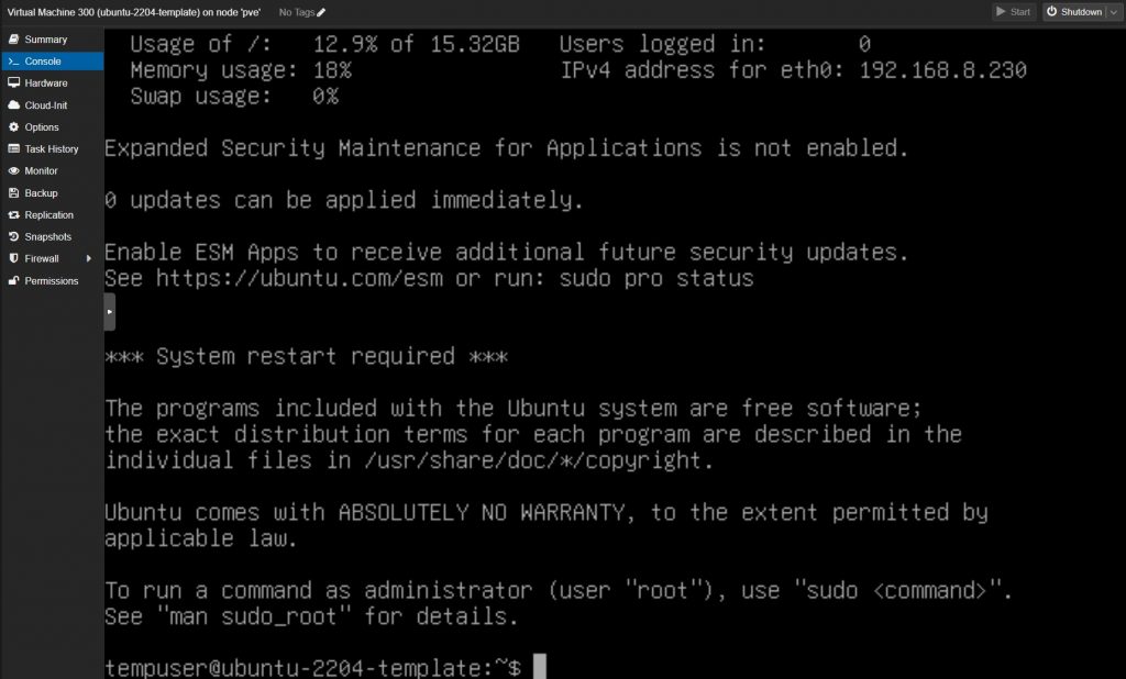 Gotowy szablon maszyny wirtualnej Proxmox VE z systemem Ubuntu 22.04 może być wykorzystany wszędzie tam gdzie zachodzi potrzeba szybkiego przetestowania nowej aplikacji i usługi i szkoda jest tracić kilkanaście minut na instalację oraz konfigurację systemu od nowa. Gotowy szablon stanowi świetną bazę do dalszej modyfikacji ilości i wielkości vCPU, RAM, HDD pod konkretne potrzeby danej aplikacji. Bazowo mój szablon ubuntu-2204-template posiada następujące parametry: