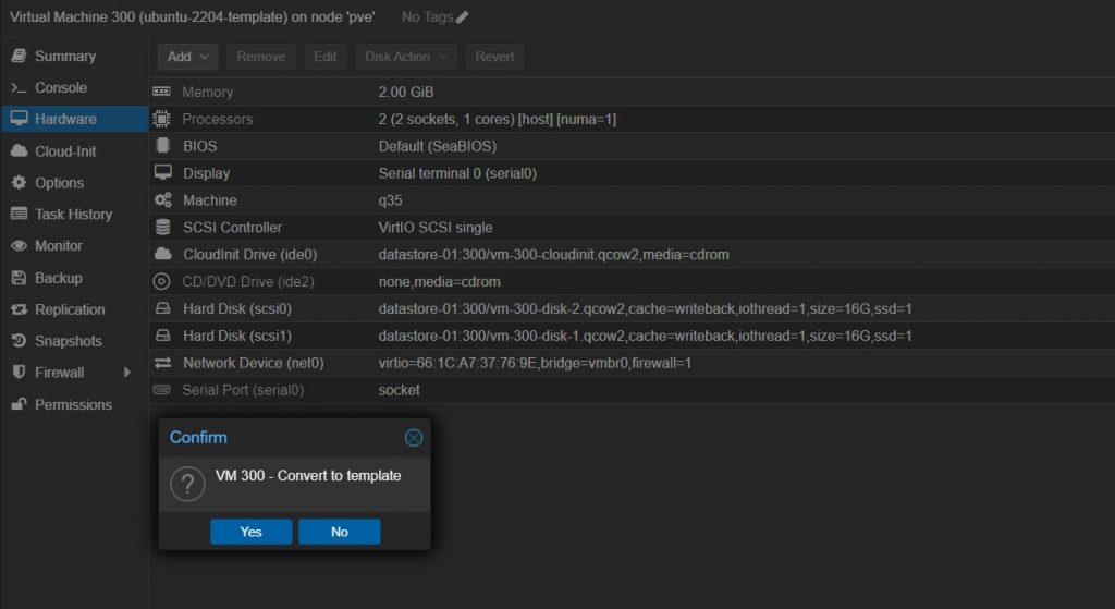 Skonwertowanie wirtualnej maszyny z systemem Ubuntu 22.04 do szablonu (Convert to template)